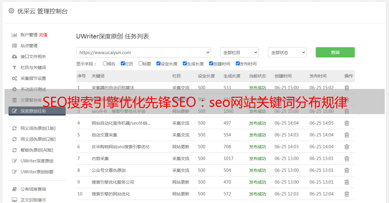优采云 发布时间: 2022-05-11 06:34SEO搜索引擎优化先锋SEO:seo网站关键词分布规律