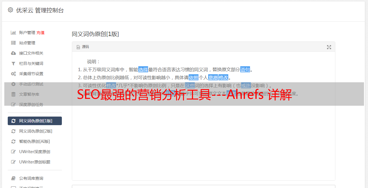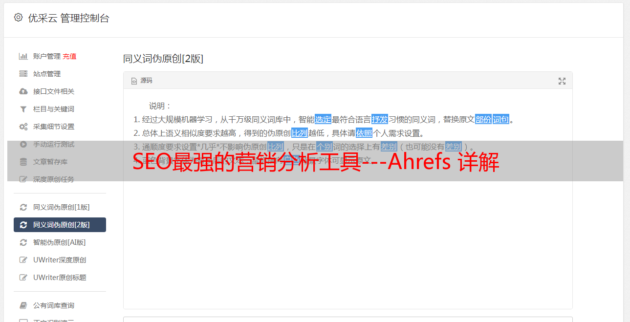 优采云 发布时间: 2022-05-11 14:54SEO最强的营销分析工具---Ahrefs 详解