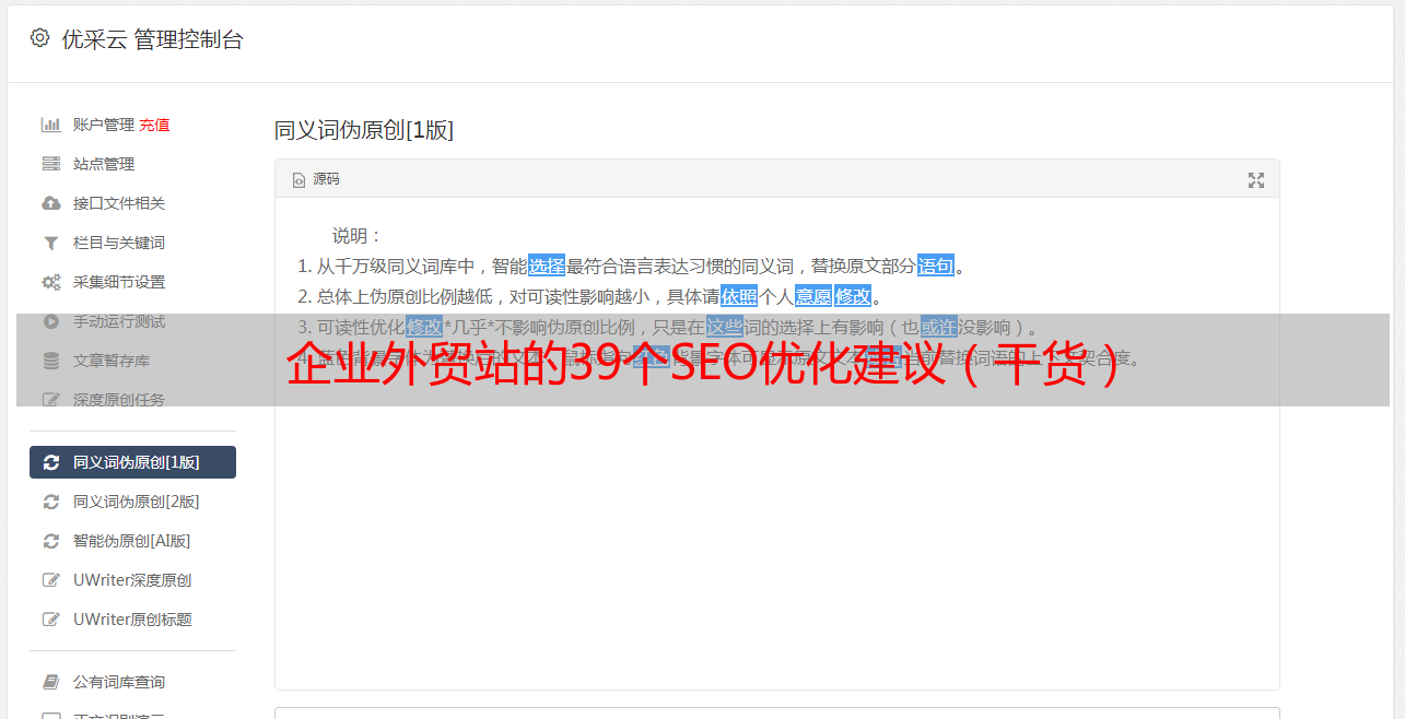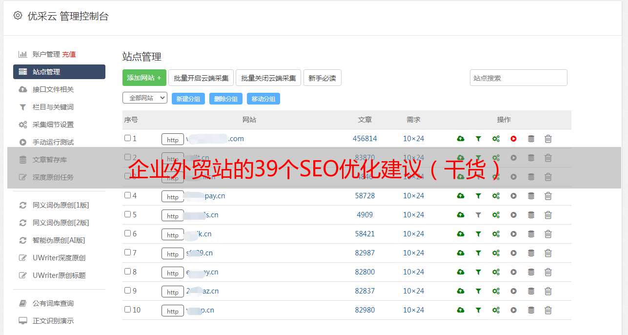 优采云 发布时间: 2022-05-11 14:54企业外贸站的39个SEO优化建议(干货)