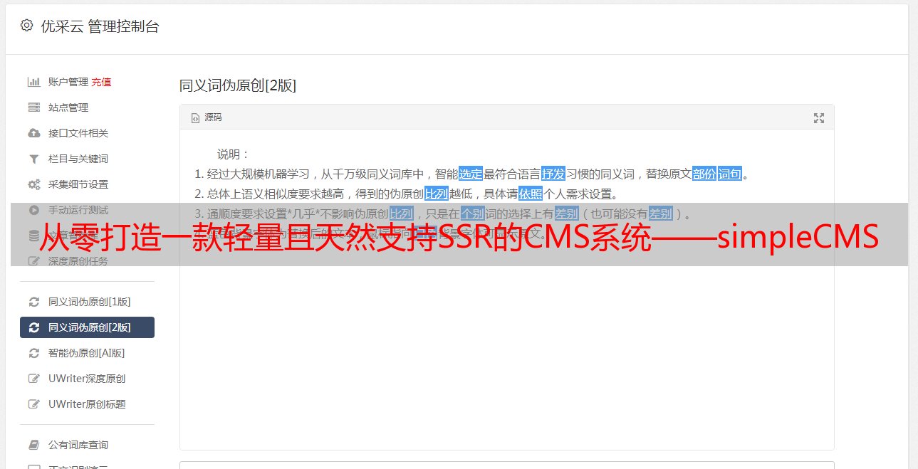 优采云 发布时间: 2022-05-11 19:37从零打造一款轻量且天然支持SSR的CMS系统——simpleCMS