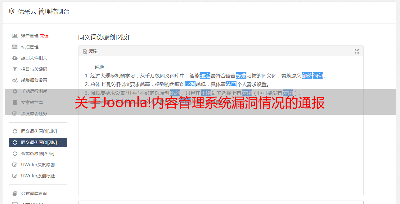 优采云 发布时间: 2022-05-11 21:51关于Joomla!内容管理系统漏洞情况的通报