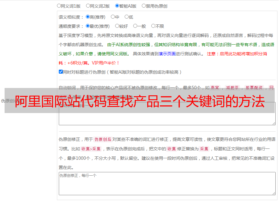 总的来说这是个人免费的操作方法,如果觉得麻烦可以去阿里巴巴外贸服务市场,购买第三方的付费工具,也能查找到产品的三个关键词的。如果提取结果里含有Highquality,请记得去掉。