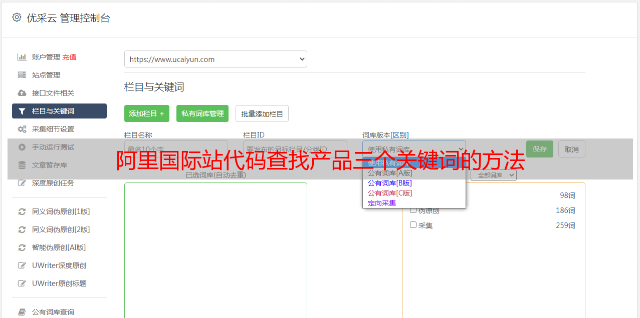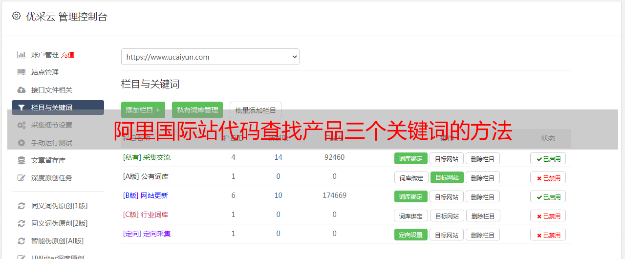 优采云 发布时间: 2022-05-12 09:01阿里国际站代码查找产品三个关键词的方法
