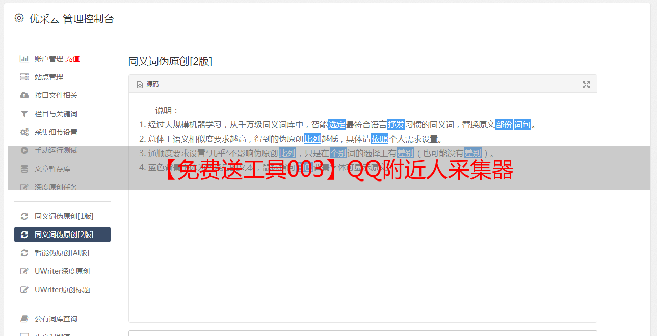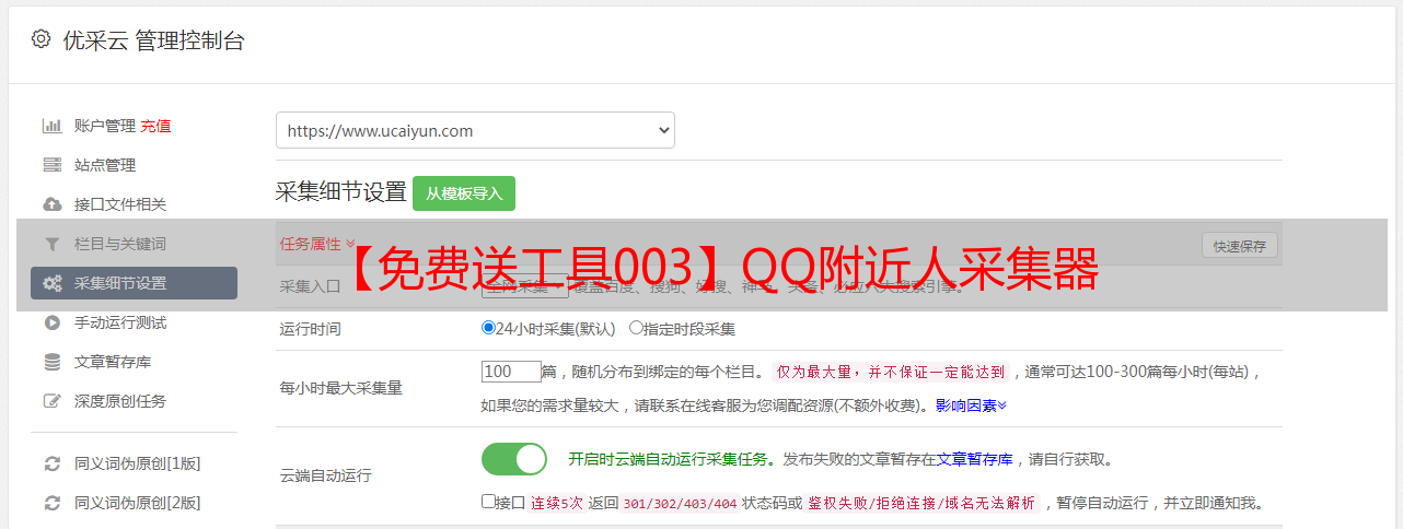 优采云 发布时间: 2022-05-13 08:50【免费送工具003】QQ附近人采集器