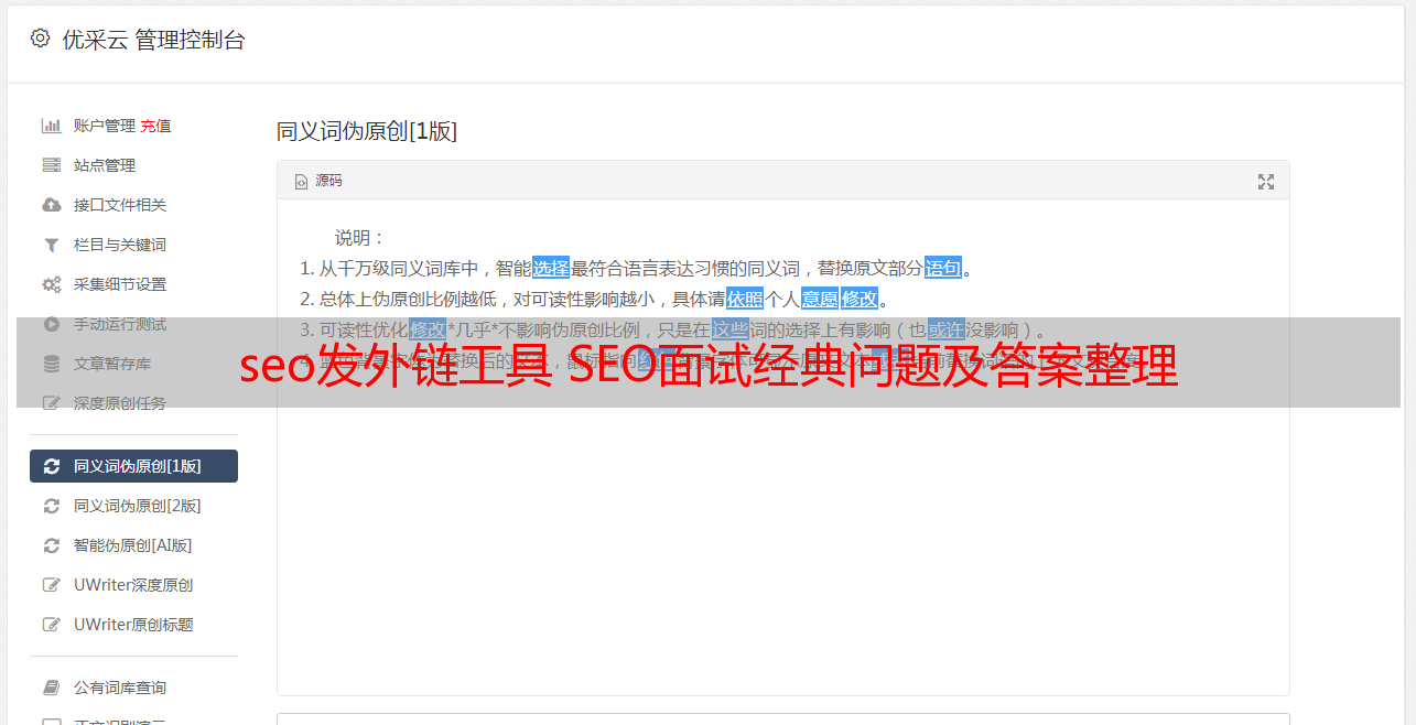优采云 发布时间: 2022-05-13 16:17seo发外链工具 SEO面试经典问题及答案整理