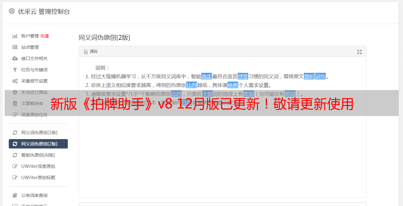 优采云 发布时间: 2022-05-13 22:54新版《拍牌助手》v8 12月版已更新!敬请更新使用