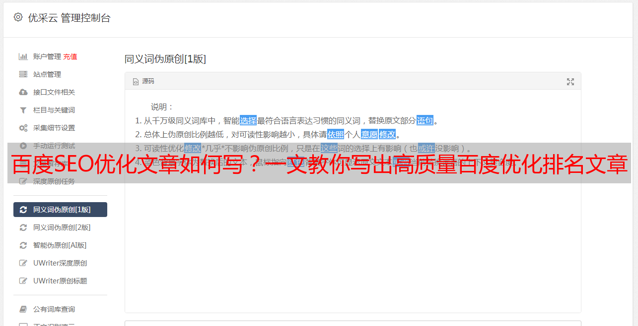 优采云 发布时间: 2022-05-13 23:30百度SEO优化文章如何写?一文教你写出高质量百度优化排名文章