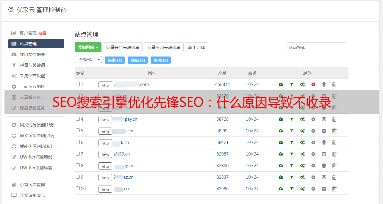 优采云 发布时间: 2022-05-13 23:34SEO搜索引擎优化先锋SEO:什么原因导致不收录