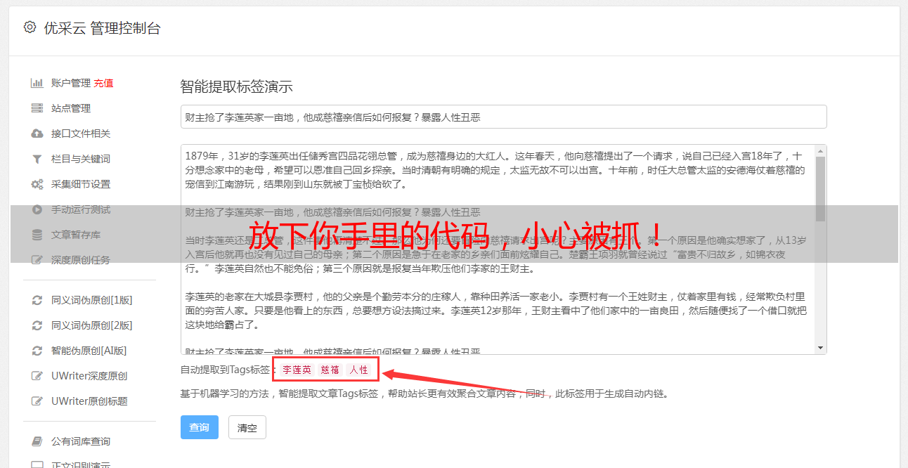 优采云 发布时间: 2022-05-14 01:04放下你手里的代码,小心被抓!