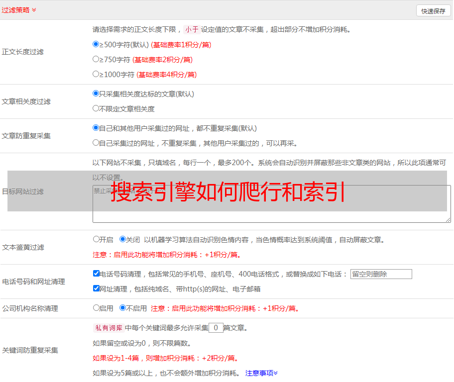 爬 行 预 算我们讨论索引,不能不说爬行预算。爬行预算可以理解为搜索引擎蜘蛛花在一个网站上抓取页面的总的时间上限。预算的份额是受多方面因素影响的,有两点是十分重要的:1、网站服务器反应速度有多快就是说在不影响用户访问体验的情况下谷歌蜘蛛能抓取网站网页的最快速度,搜索引擎蜘蛛不会为了抓取更多页面,把网站服务器拖垮,所以对某个网站都会设定一个网页抓取速度的上限,也就是服务器能承受的上限,在这个速度限制内,搜索引擎蜘蛛抓取不会拖慢服务器、影响用户访问。抓取速度限制会影响搜索引擎能够抓取的网页数。服务器反应速度下降,抓取速度限制跟着下降,抓取减慢,甚至停止抓取。2、网站的重要性(可以理解为网站的权重)如果你在运营一个大型的新闻站点,持续不断的更新搜索用户想要了解的信息,那么你的站点被抓取和索引的频率就会很高(这一点我敢保证!)。如果你运营一个小型站点,有几十个链接,在这种情况下,你的网站就不会被Google认为是重要的(你可能在某个领域很重要,但当涉及到爬行预算的话就显得不那么重要了),那么爬行预算就会很低。小网站页面数少,即使网站权重再低,服务器再慢,每天搜索引擎蜘蛛抓取的再少,通常至少也能抓个几百页,十几天怎么也会把全站抓取一遍了。
