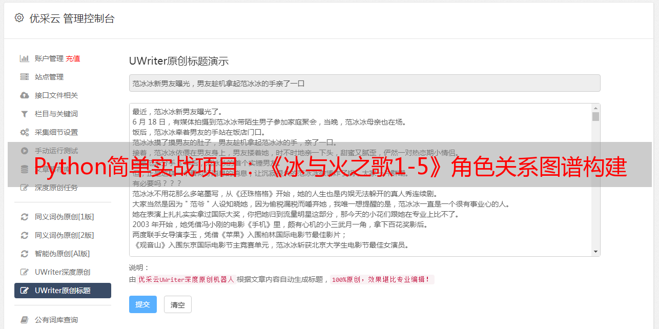 优采云 发布时间: 2022-05-14 02:11Python简单实战项目:《冰与火之歌1-5》角色关系图谱构建——数据库设计