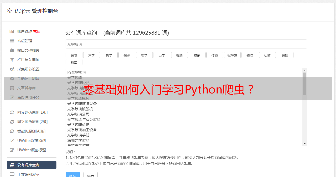 优采云 发布时间: 2022-05-14 03:03零基础如何入门学习Python爬虫?