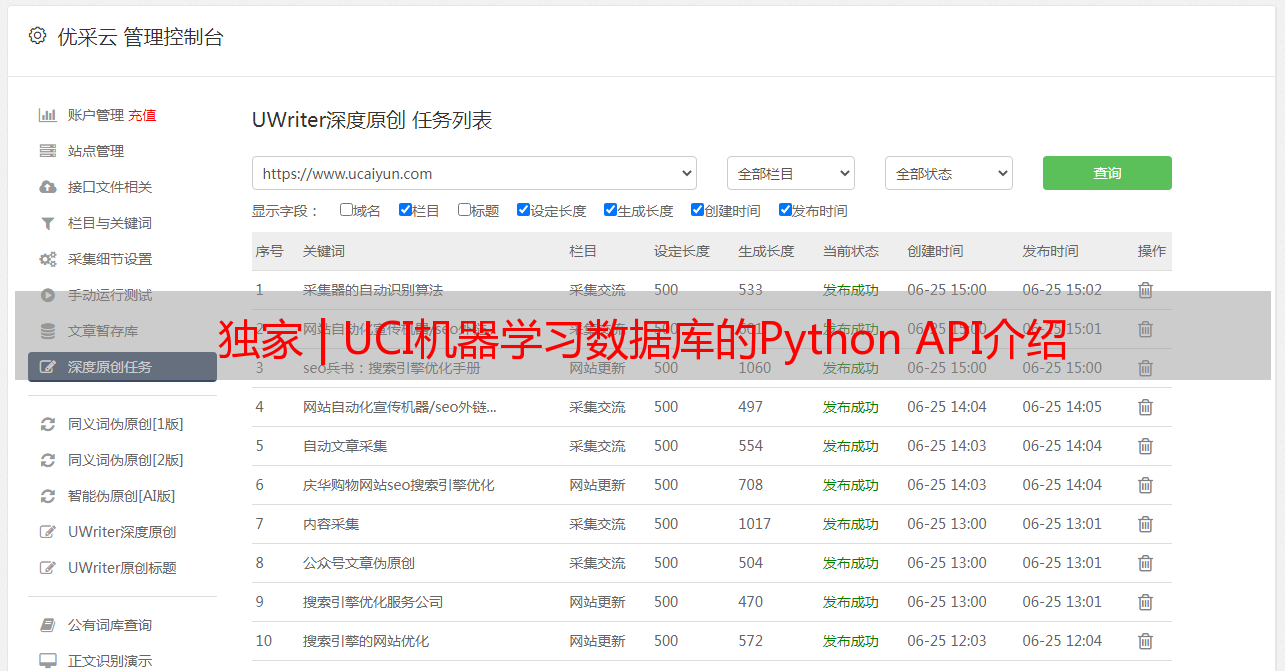 优采云 发布时间: 2022-05-14 06:53独家 | UCI机器学习数据库的Python API介绍