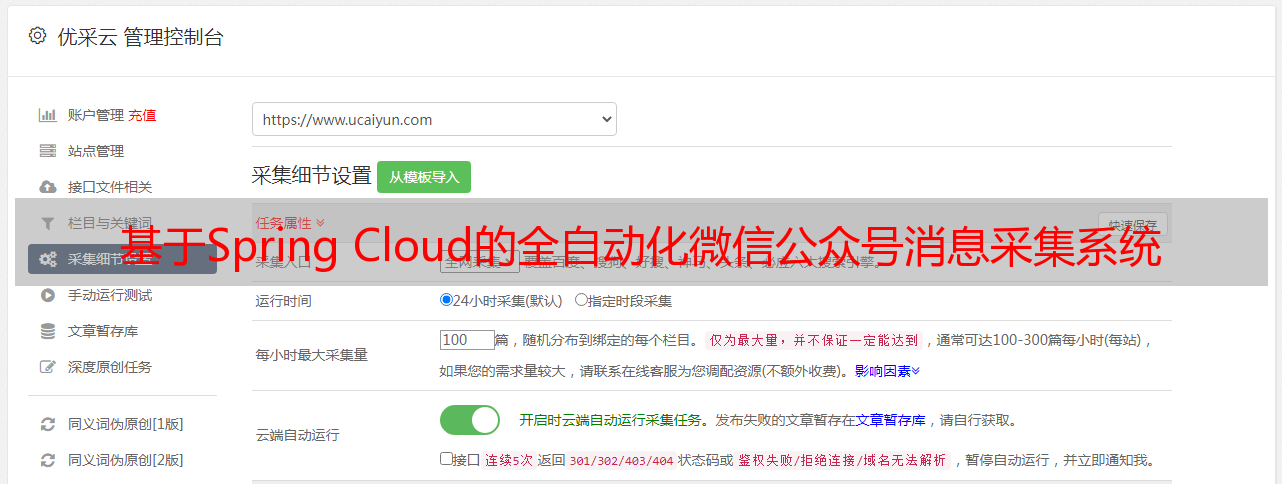 优采云 发布时间: 2022-05-14 06:53基于Spring Cloud的全自动化微信公众号消息采集系统