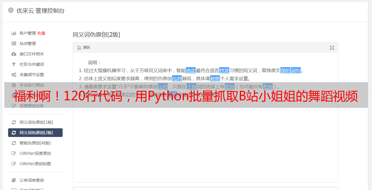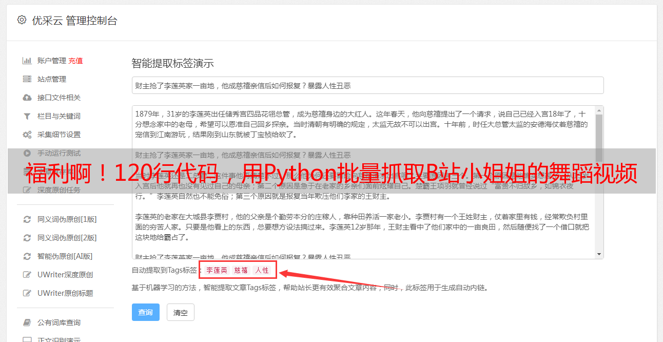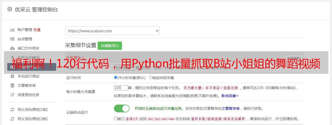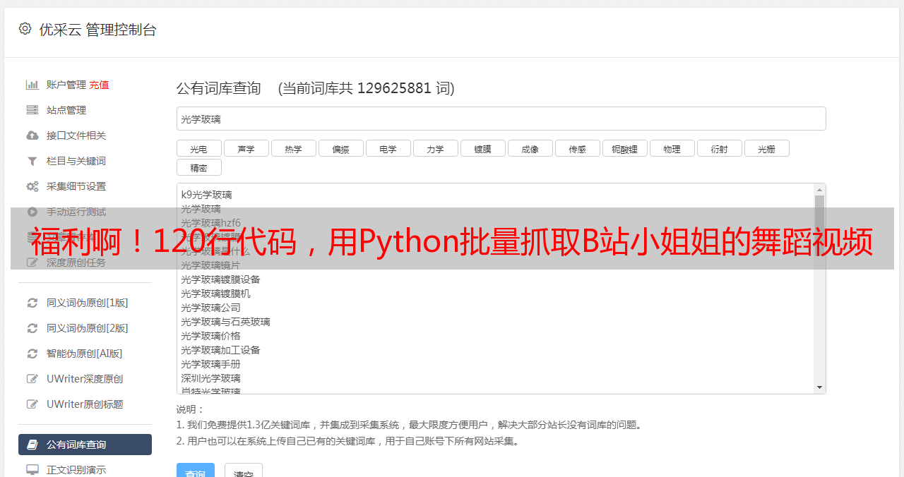 优采云 发布时间: 2022-05-14 08:48福利啊!120行代码,用Python批量抓取B站*敏*感*词*姐的舞蹈视频,满屏美腿!