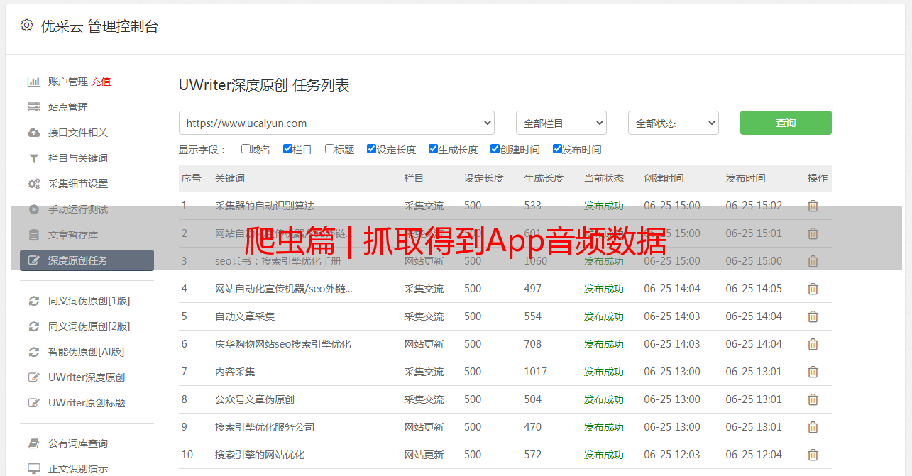 优采云 发布时间: 2022-05-14 11:45爬虫篇 | 抓取得到App音频数据