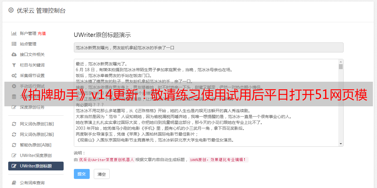 优采云 发布时间: 2022-05-14 15:48《拍牌助手》v14更新!敬请练习使用试用后平日打开51网页模拟界面体验