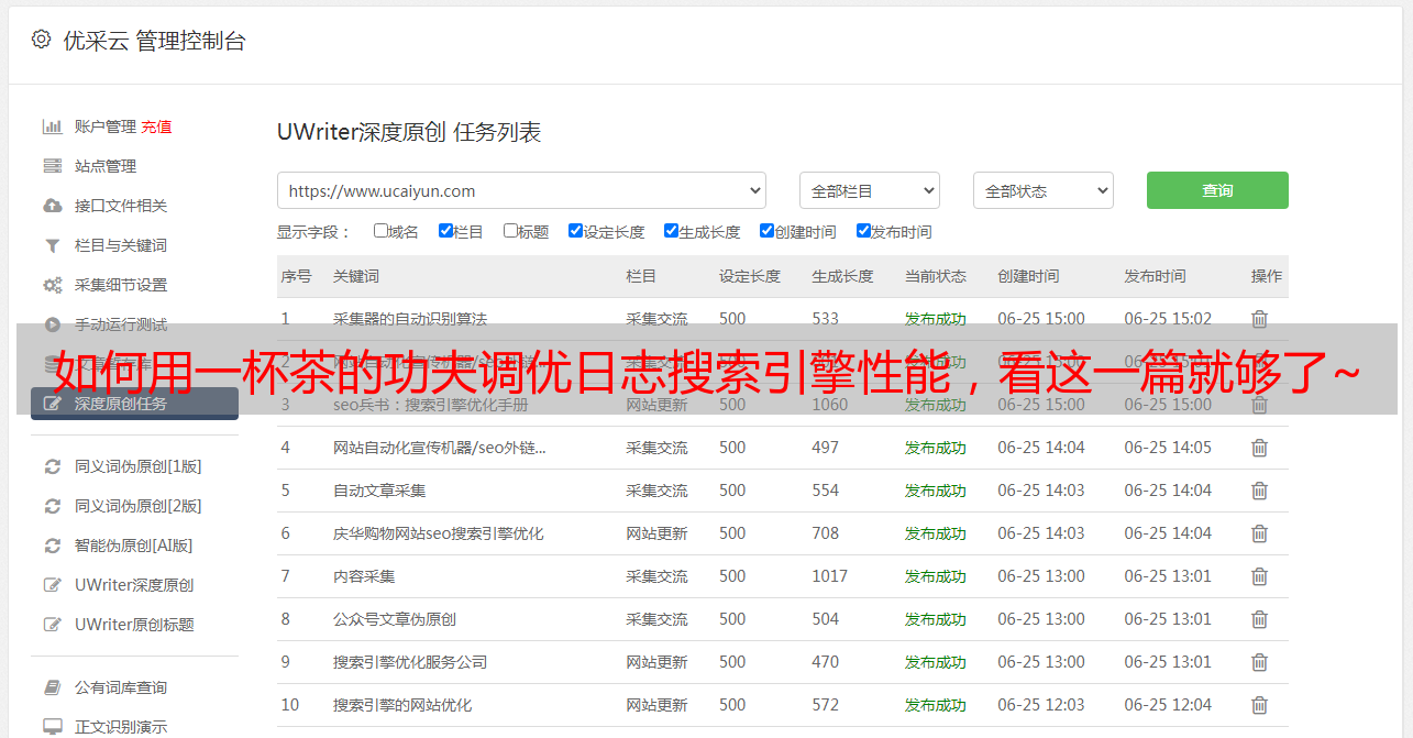 优采云 发布时间: 2022-05-14 19:02如何用一杯茶的功夫调优日志搜索引擎性能,看这一篇就够了~