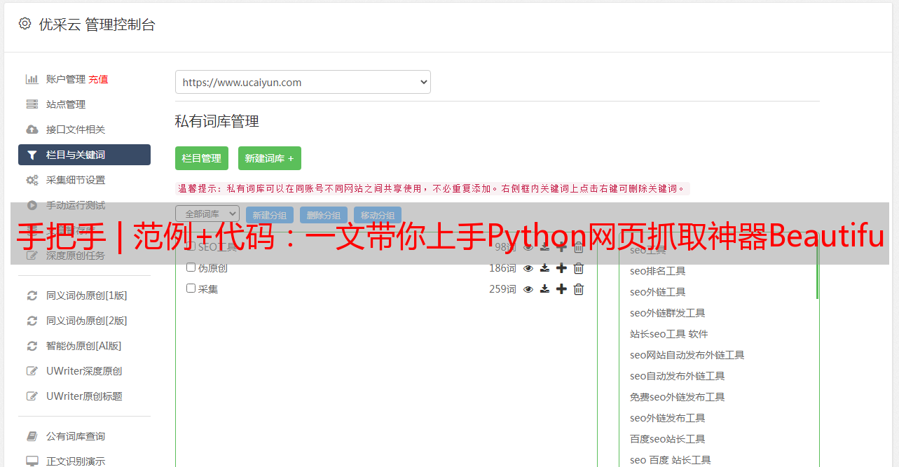 优采云 发布时间: 2022-05-15 01:23*敏*感*词* | 范例+代码:一文带你上手Python网页抓取神器BeautifulS