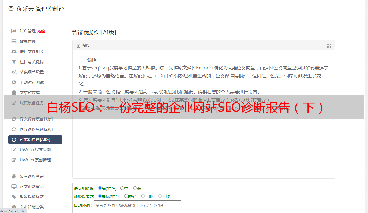 优采云 发布时间: 2022-05-15 06:21白杨SEO:一份完整的企业网站SEO诊断报告(下)