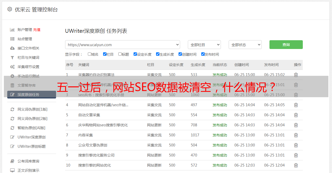 优采云 发布时间: 2022-05-15 10:40五一过后,网站SEO数据被清空,什么情况?