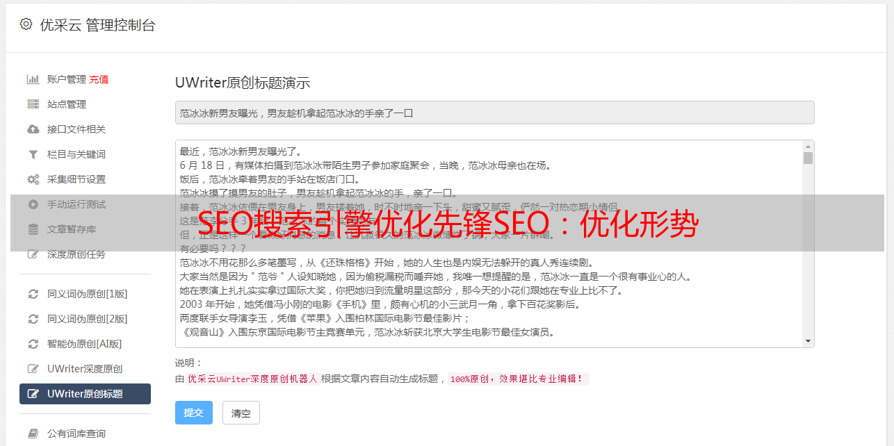 优采云 发布时间: 2022-05-17 14:39SEO搜索引擎优化先锋SEO:优化形势