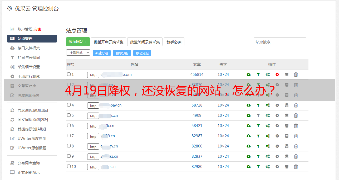 优采云 发布时间: 2022-05-18 01:574月19日降权,还没恢复的网站,怎么办?