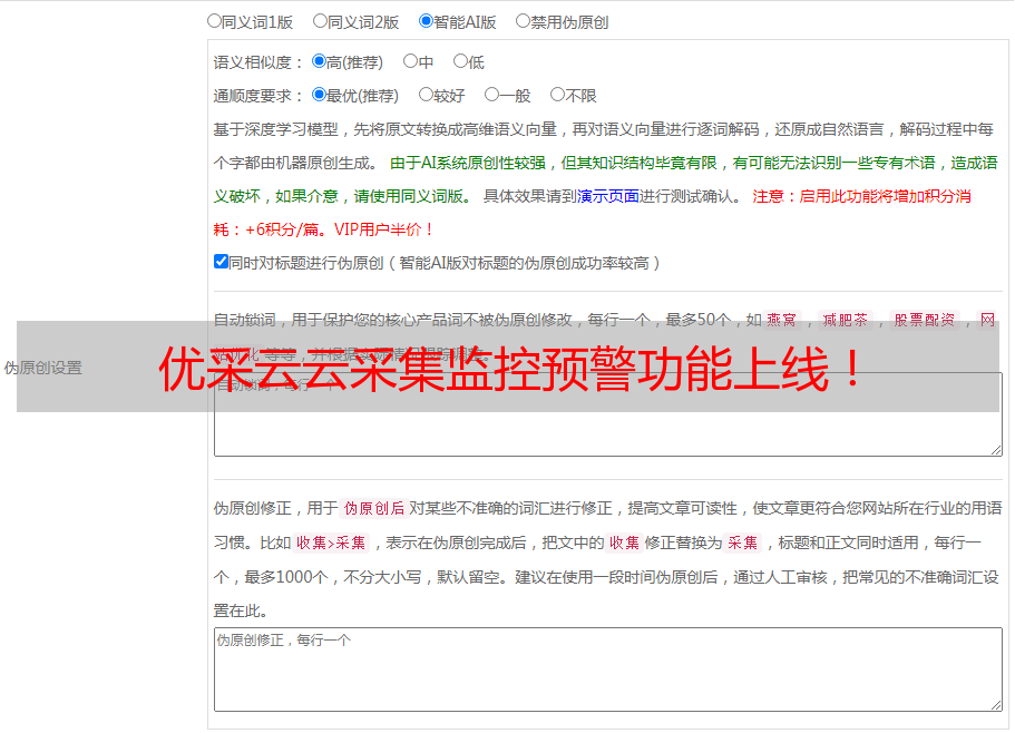 经过多个版本内测,优采云云采集监控预警功能已经正式上线!