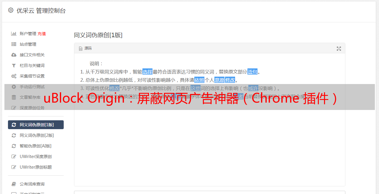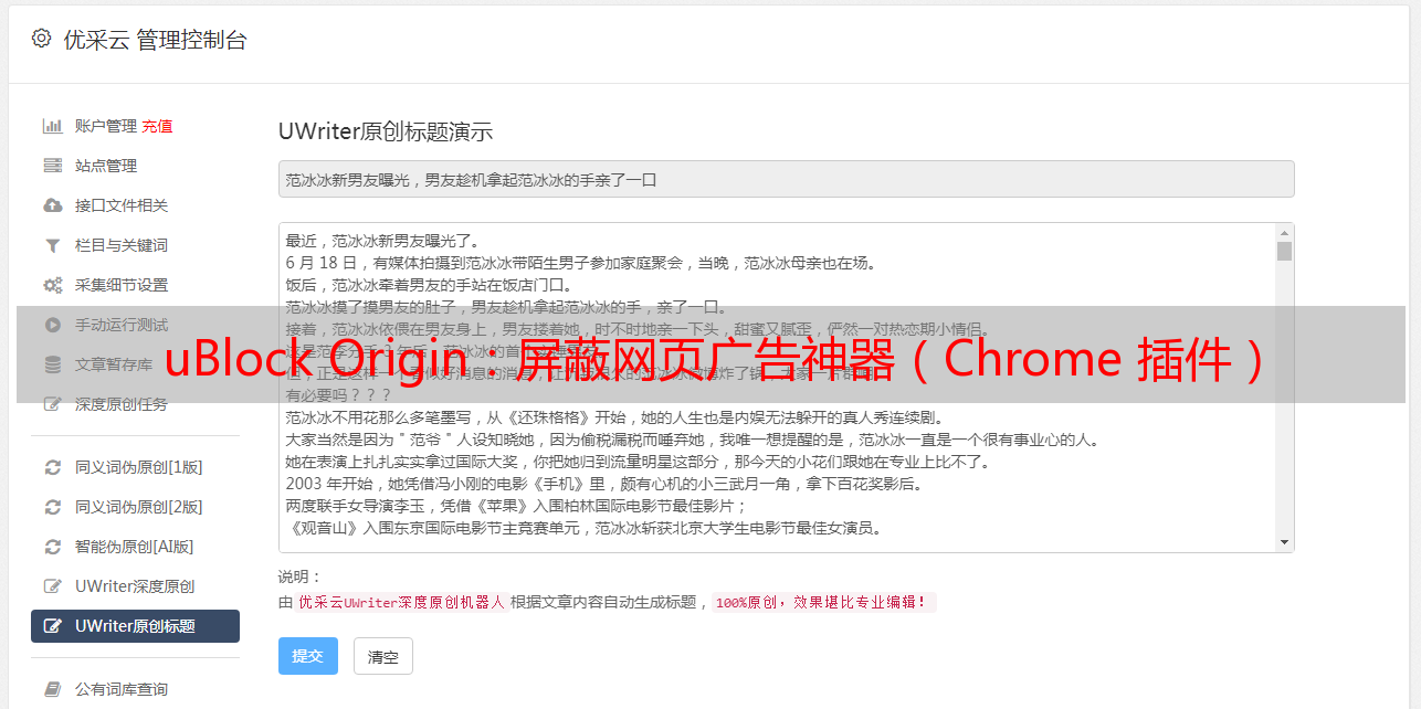 优采云 发布时间: 2022-05-21 16:01uBlock Origin:屏蔽网页广告神器(Chrome 插件)