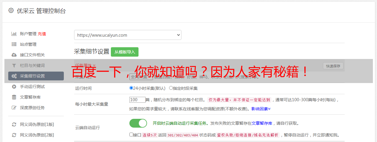 优采云 发布时间: 2021-05-19 22:26百度一下,你就知道吗?因为人家有秘籍!