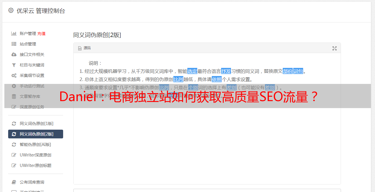 优采云 发布时间: 2022-05-23 01:02Daniel:电商独立站如何获取高质量SEO流量?