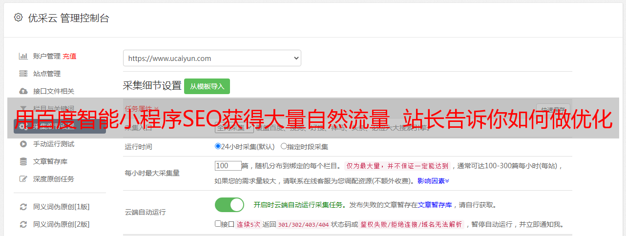 优采云 发布时间: 2022-05-23 18:27用百度智能小程序SEO获得大量自然流量 站长告诉你如何做优化