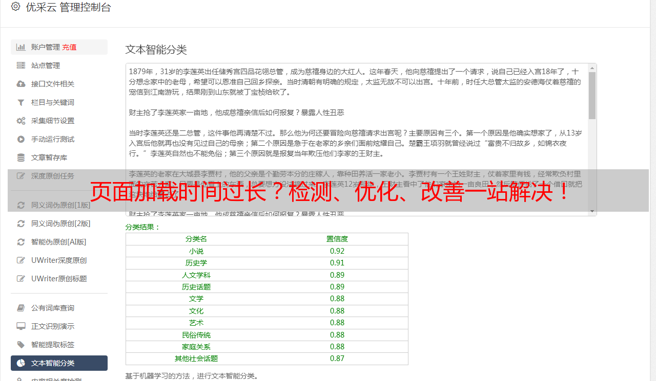 优采云 发布时间: 2022-05-23 21:48页面加载时间过长?检测、优化、改善一站解决!