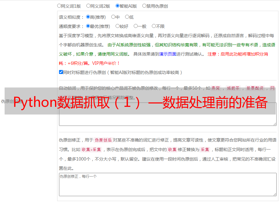 优采云 发布时间: 2022-05-23 23:19Python数据抓取(1) —数据处理前的准备