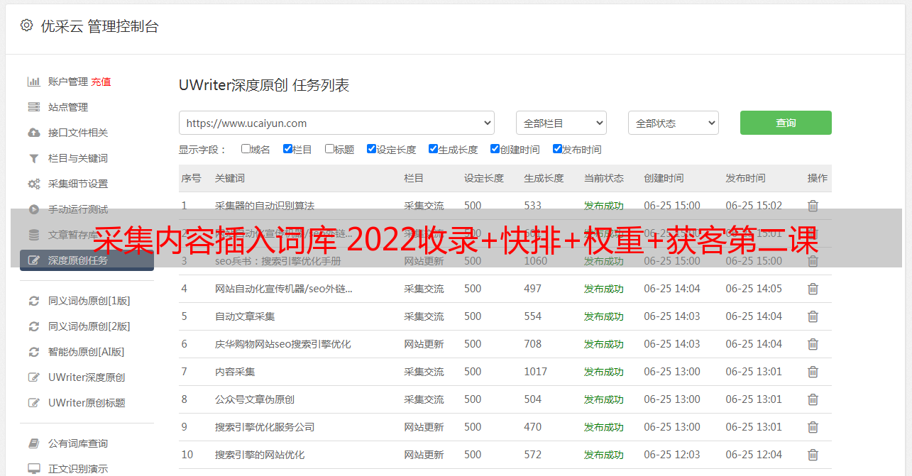 优采云 发布时间: 2022-05-24 04:24采集内容插入词库 2022收录+快排+权重+获客第二课