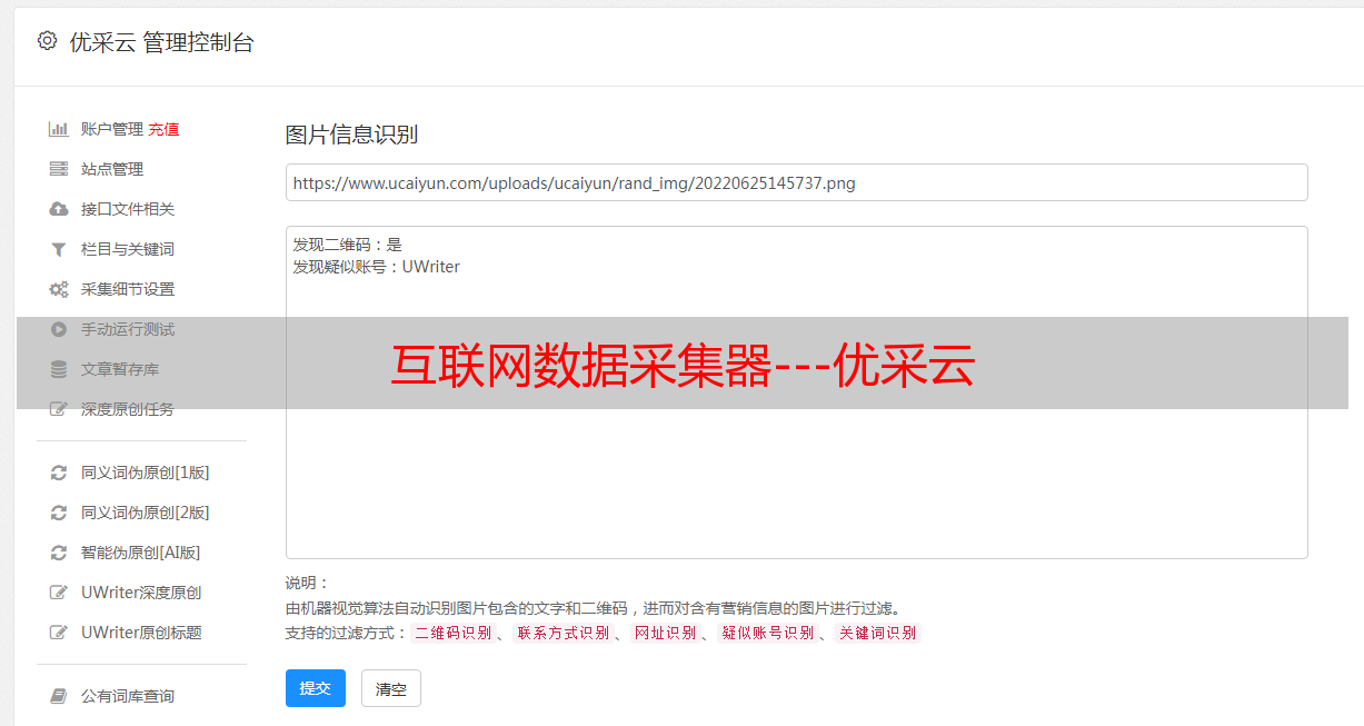 优采云数据采集系统以完全自主研发的分布式云计算平台为核心,可以在很短的时间内,轻松从各种不同的网站或者网页获取大量的规范化数据,帮助任何需要从网页获取信息的客户实现数据自动化采集,编辑,规范化,摆脱对人工搜索及收集数据的依赖,从而降低获取信息的成本,提高效率。