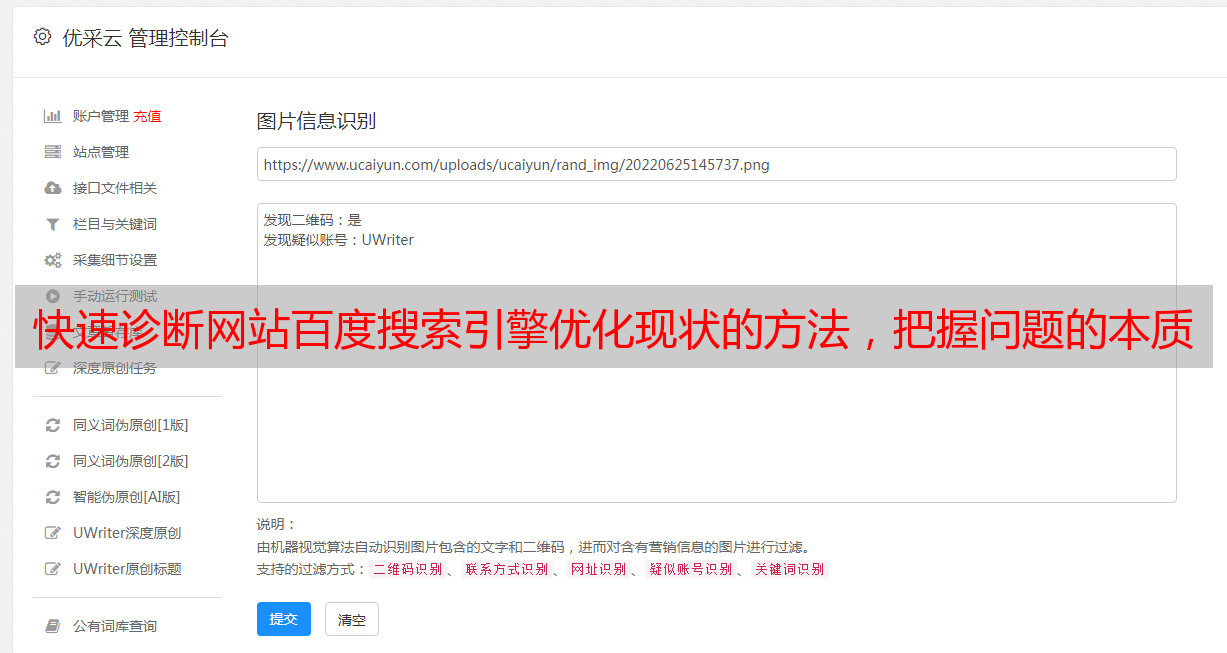优采云 发布时间: 2021-05-20 02:24快速诊断网站百度搜索引擎优化现状的方法,把握问题的本质