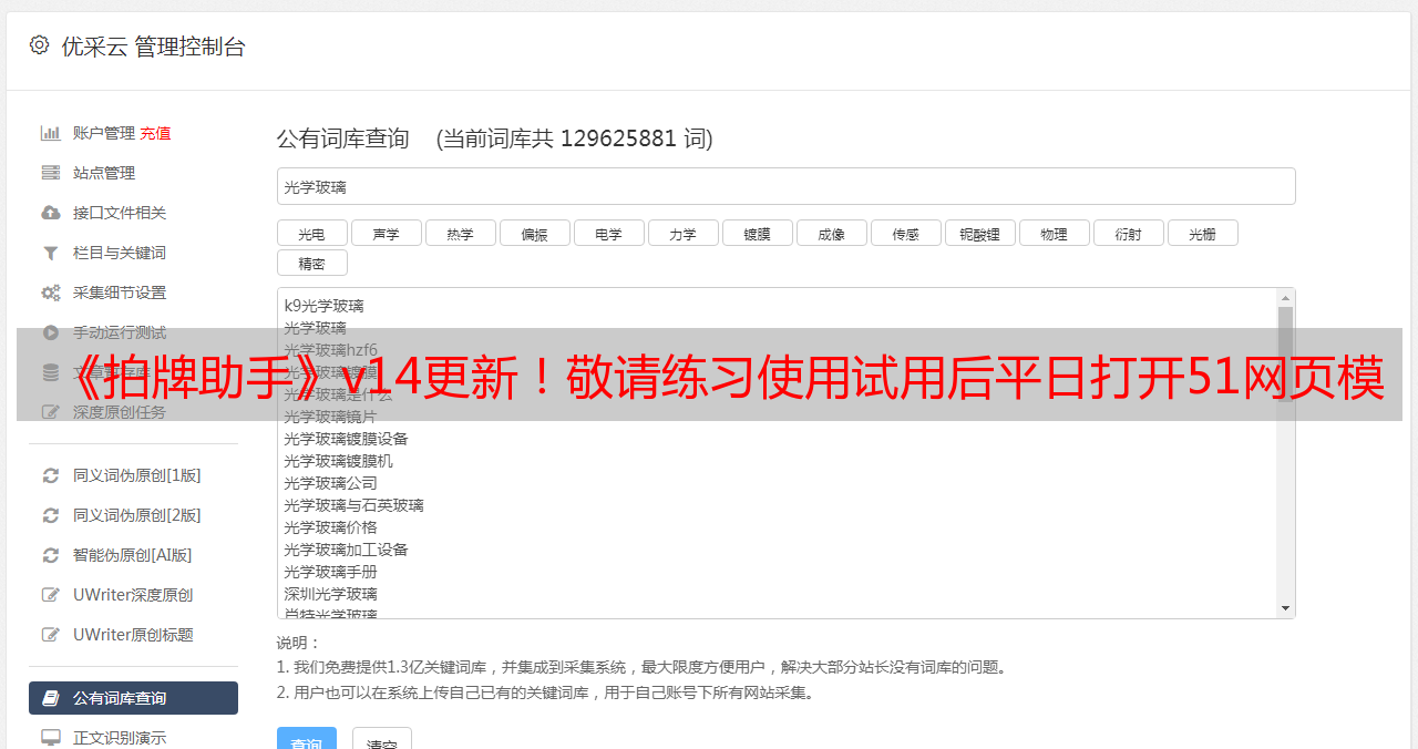 优采云 发布时间: 2022-05-26 12:04《拍牌助手》v14更新!敬请练习使用试用后平日打开51网页模拟界面体验