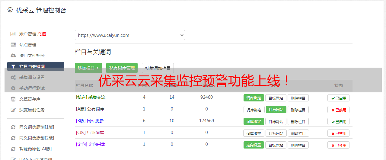 经过多个版本内测,优采云云采集监控预警功能已经正式上线!