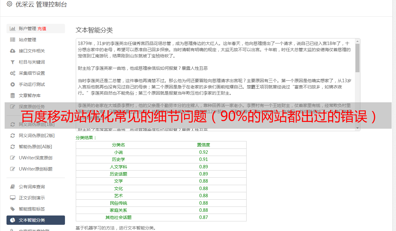 优采云 发布时间: 2022-05-28 02:59百度移动站优化常见的细节问题(90%的网站都出过的错误)