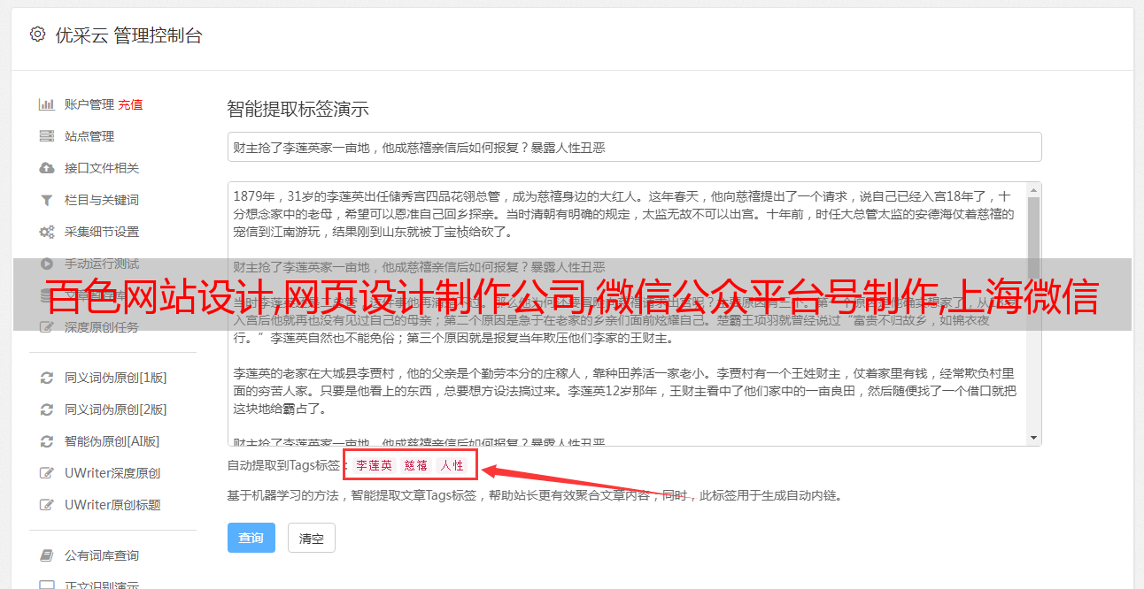 优采云 发布时间: 2022-05-29 01:54百色网站设计,网页设计制作公司,微信公众平台号制作,上海微信开发