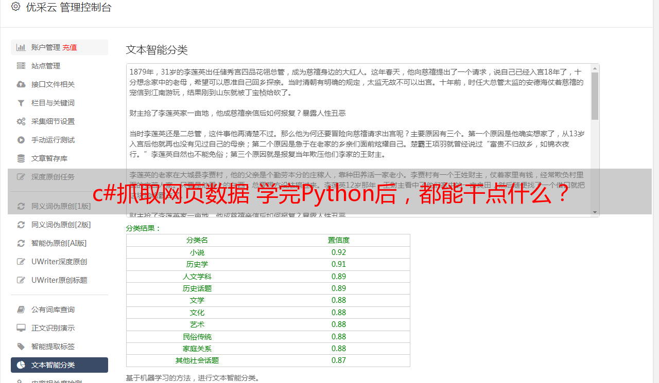 优采云 发布时间: 2022-05-29 07:35c#抓取网页数据 学完Python后,都能干点什么?