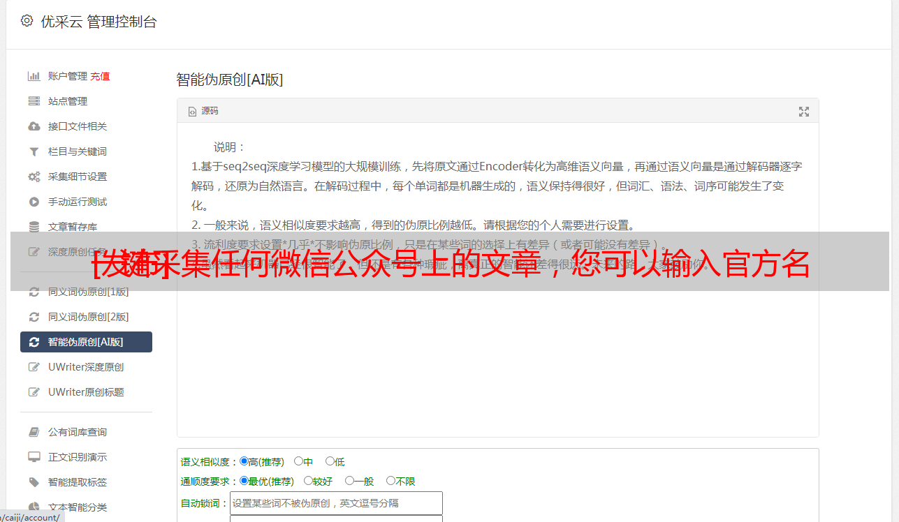 1. 您可以输入微信公众号的名称来实时采集微信公众号的内容.