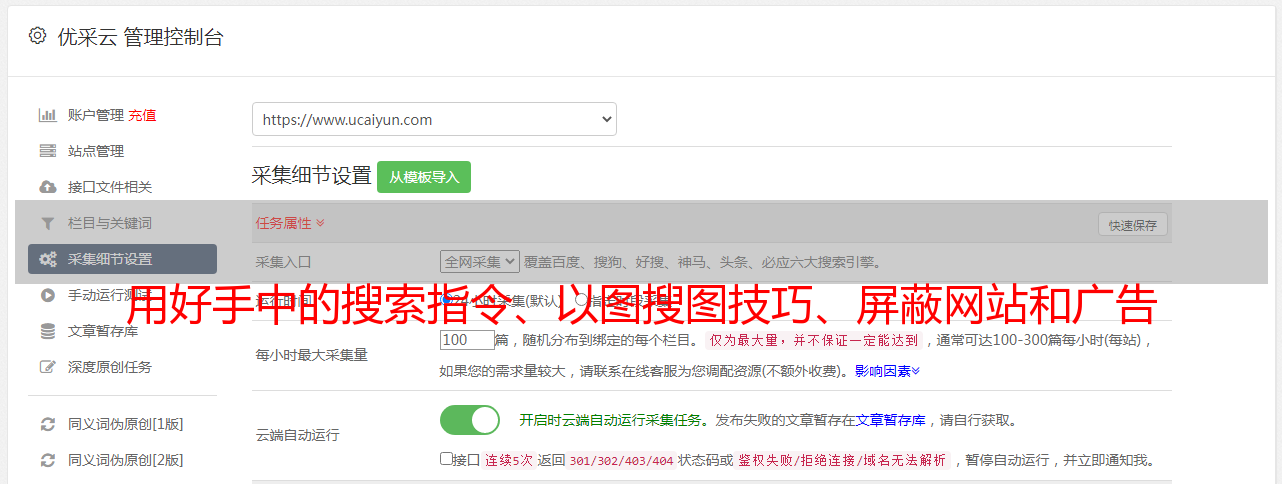 添加站点:关键词之后的URL,您可以在指定的网站中搜索关键词,它更适合于垂直且令人难忘的网站,在这种情况下,您可以打开网站 ,直接使用关键词进行搜索。