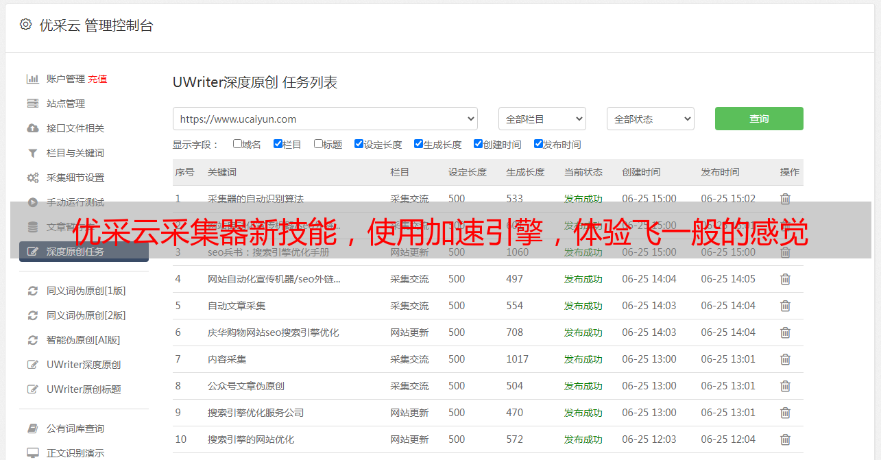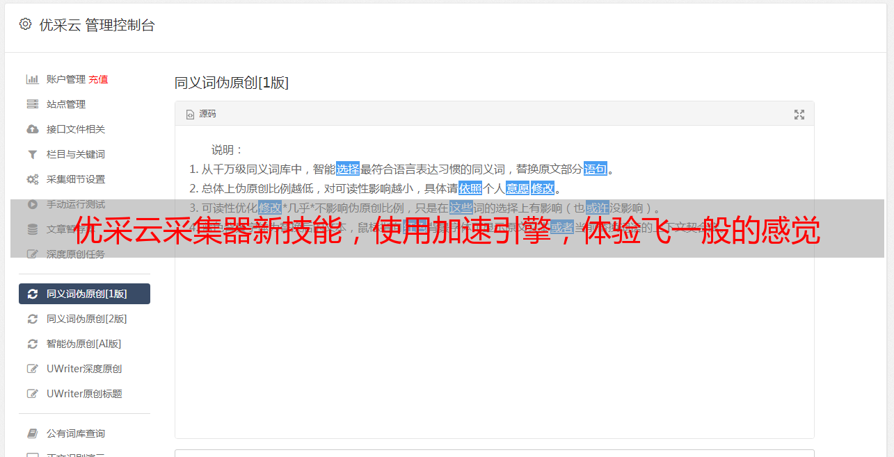 优采云采集器新技能,使用加速引擎,体验飞一般的感觉