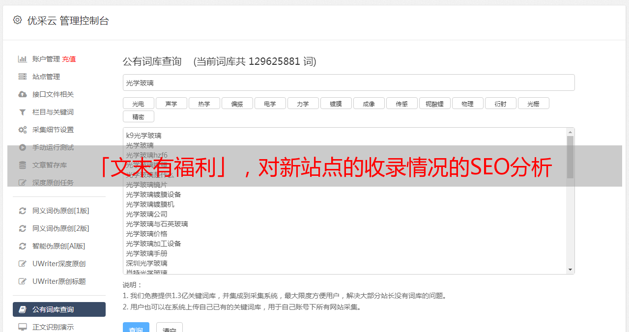 优采云 发布时间: 2022-06-04 04:39「文末有福利」,对新站点的收录情况的SEO分析