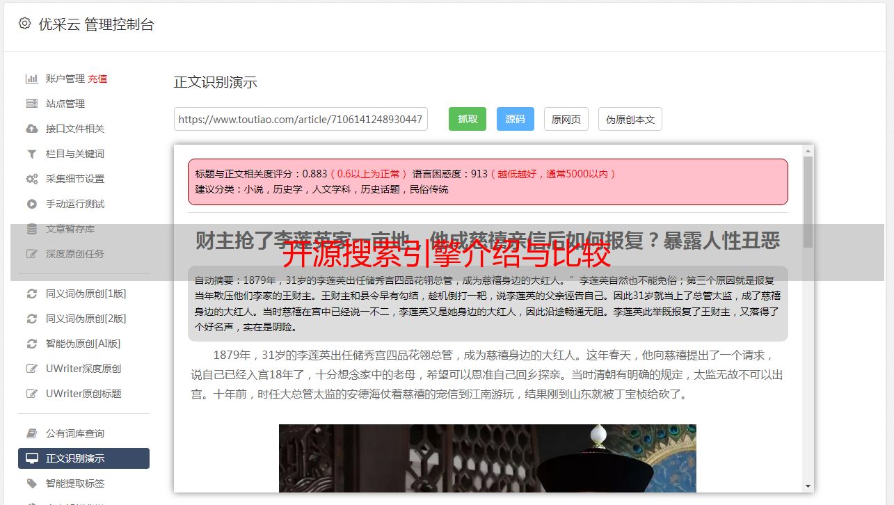 优采云 发布时间: 2022-06-05 15:10开源搜索引擎介绍与比较