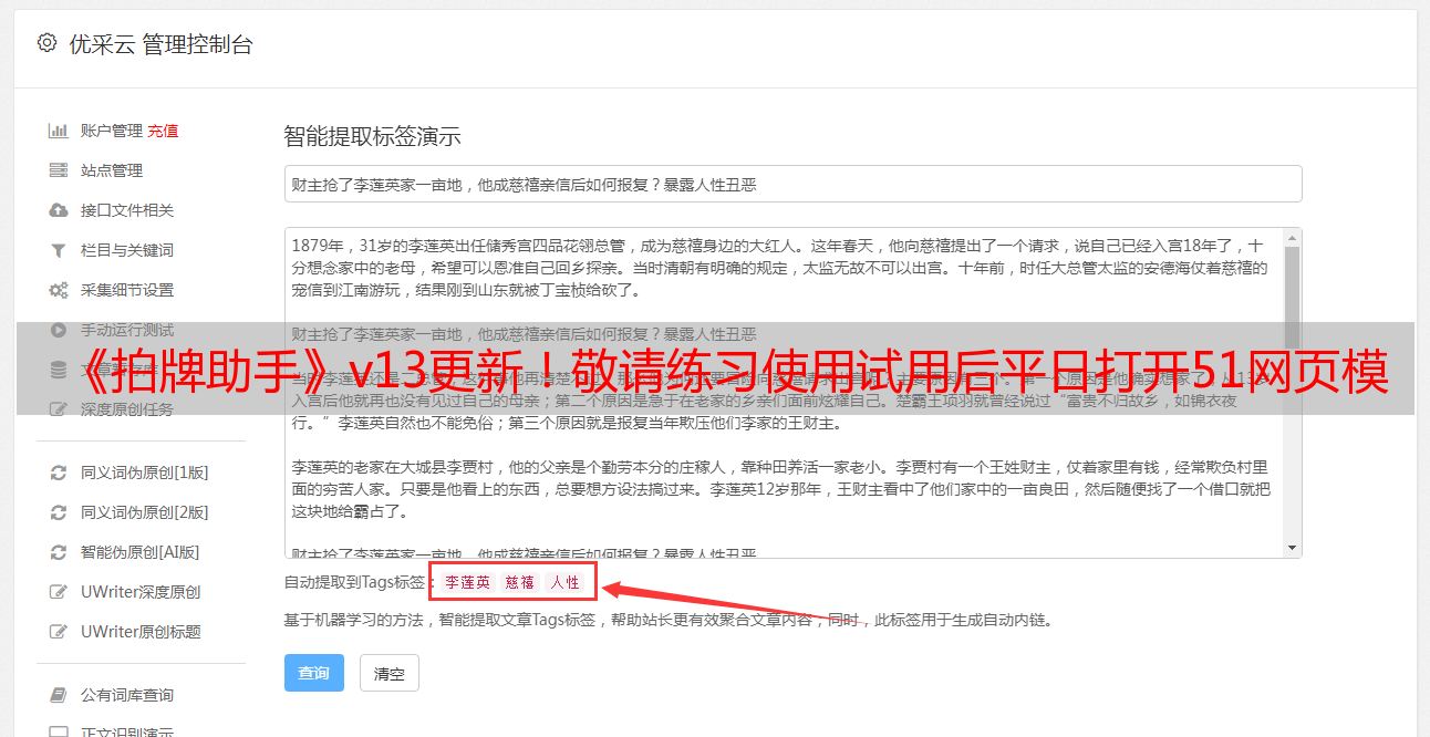 优采云 发布时间: 2022-06-05 16:48《拍牌助手》v13更新!敬请练习使用试用后平日打开51网页模拟界面体验