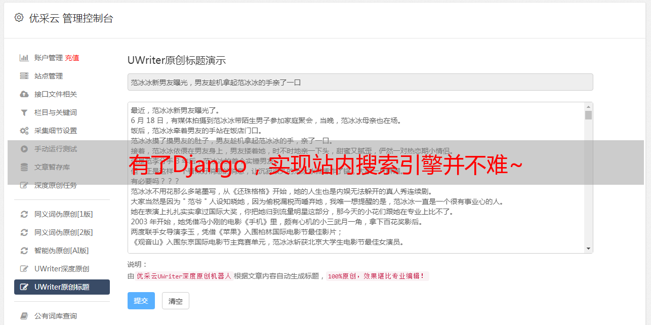 优采云 发布时间: 2022-06-06 12:59有了Django,实现站内搜索引擎并不难~