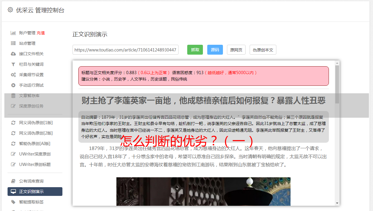 很多结果都是超级雕刻的,但是宣传效果不是很好,所以很孤独。搜索优化只是一种市场推销方法。要考虑如何划分市场,必须基于整体分析。遵循的原则主要是始终迎合百度和其他SE和客户。该系统是一座桥梁,需要不断维护和双向服务,否则将被同行击败。那么用户如何判断优缺点呢?我们需要详细说明以下几点:
